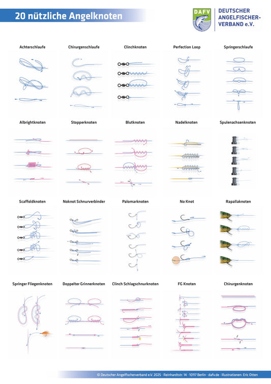 DAFV Knoten-Poster – 20 nützliche Angelknoten auf einen Blick