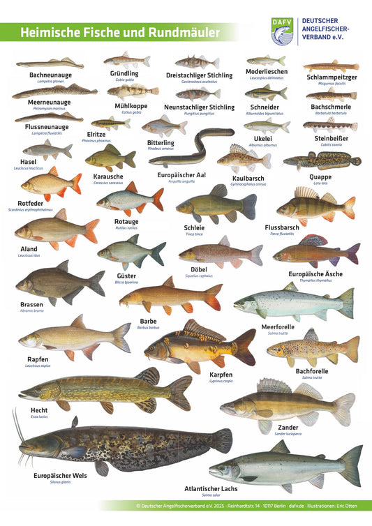 DAFV Fisch-Poster „Heimische Fische und Rundmäuler“ – Lehr- und Deko-Poster